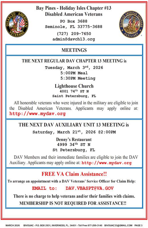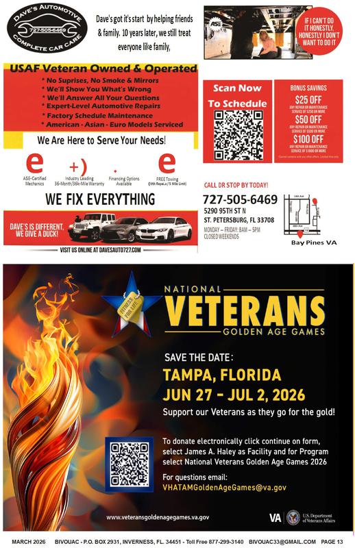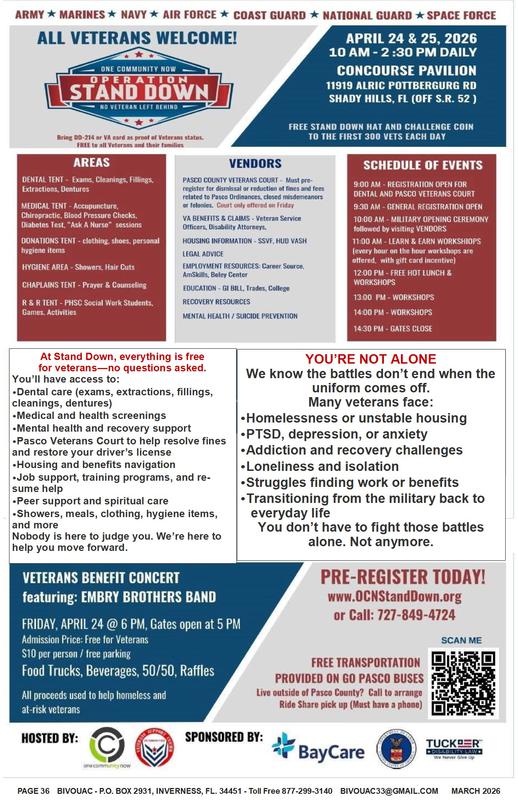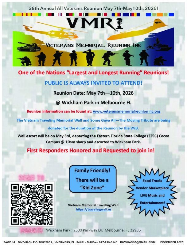 FAIR USE NOTICE: This publication contains copyrighted material the use of which has not always been specifically authorized by the copyright owner. The Bivouac Veterans News, Inc. is making such material available in our efforts to advance